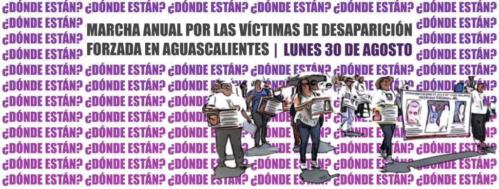 En Aguascalientes, en el Colectivo Buscando Personas Verdad y Justicia están integradas las familias de 19 personas desaparecidas. Entre ellas está, María Angélica y María de Jesús que buscan a sus hijos Arturo Muñoz y José Guadalupe Rodríguez; Patricia Navarro busca a su hija Claudia Elizabeth Reyes Navarro; Claudia busca a su hermano Marco Antonio de la Torre Ramos, Mercedes busca a su hijo Jonathan López Belrmares, Francisco Javier Espinoza busca a su hijo Javier, y Sergio de Lara busca a su hijo Sergio De Lara Quezada. Las familias también marcharán por Paola Álvarez, desaparecida en 2015.