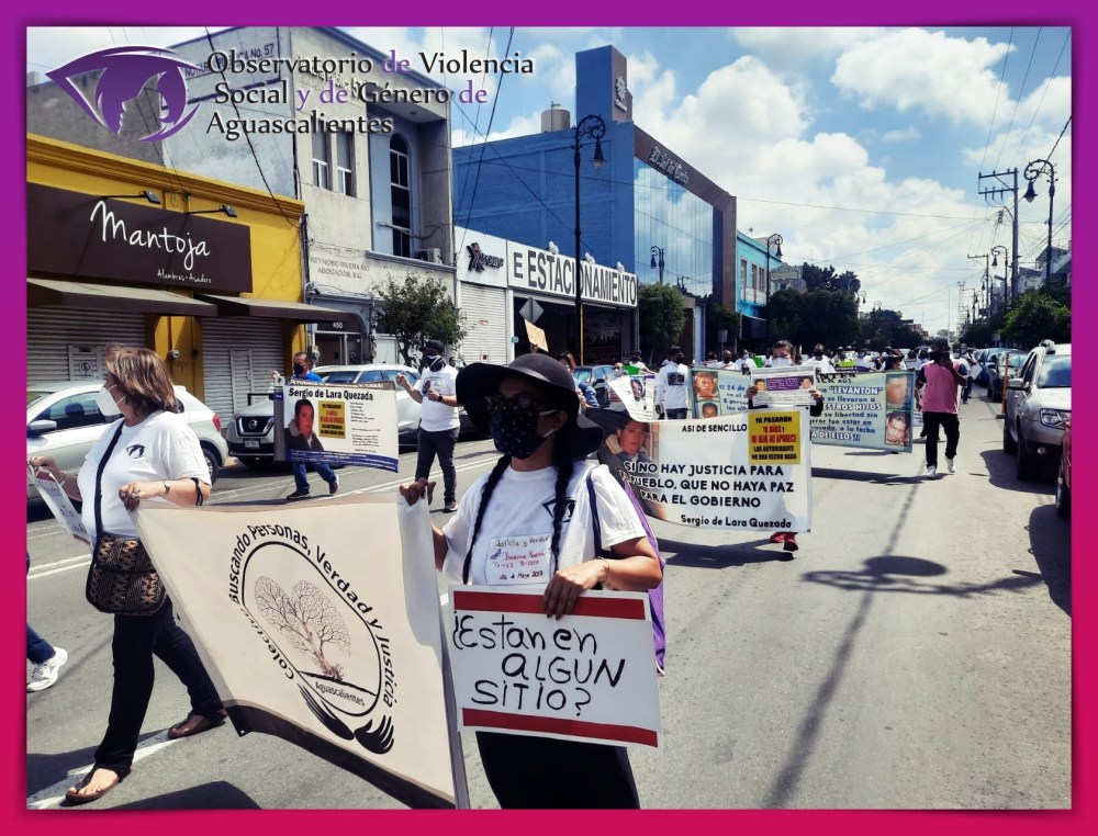 El pasado 30 de agosto de 2021 se llevó a cabo la marcha anual por las víctimas de desapariciones forzadas en Aguascalientes, convocada por el Observatorio de Violencia Social y de Género de Aguascalientes y el Colectivo de familias «Buscando personas, verdad y justicia».