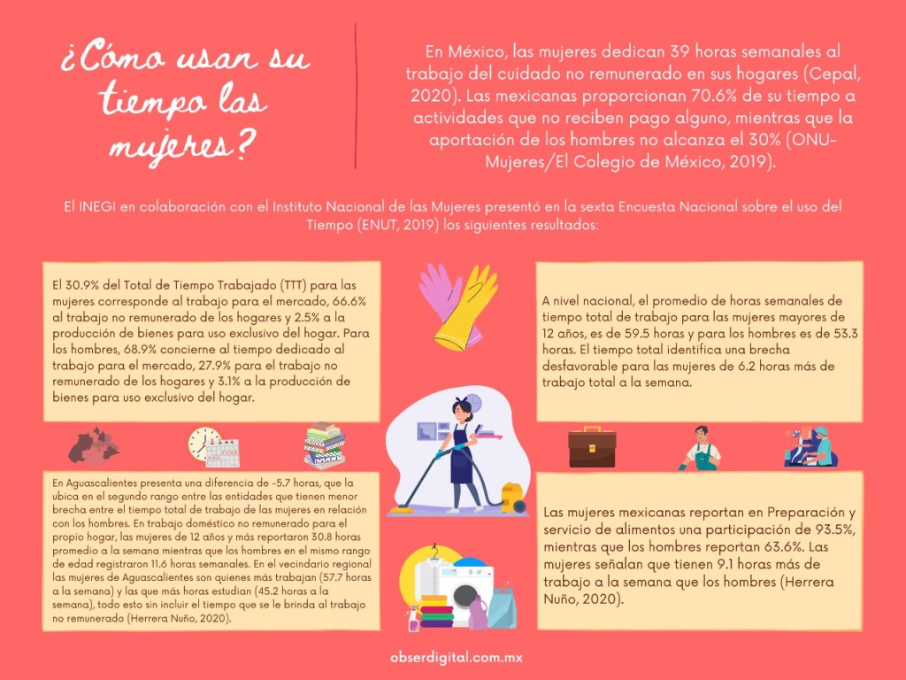 El trabajo doméstico es la clave para que un sistema familiar u hogar funcione, y que cada uno de las y los miembros cumplan con sus dinámicas diarias con éxito. Este es un tipo de trabajo que demanda niveles altos de tiempo, energía y eficiencia, por lo que merece ser reconocido socialmente, remunerado económicamente y contar con prestaciones laborales y sociales. La división del trabajo doméstico en los hogares se vive como una violencia de imposición contra las mujeres, dejando a los hombres libres de la responsabilidad.