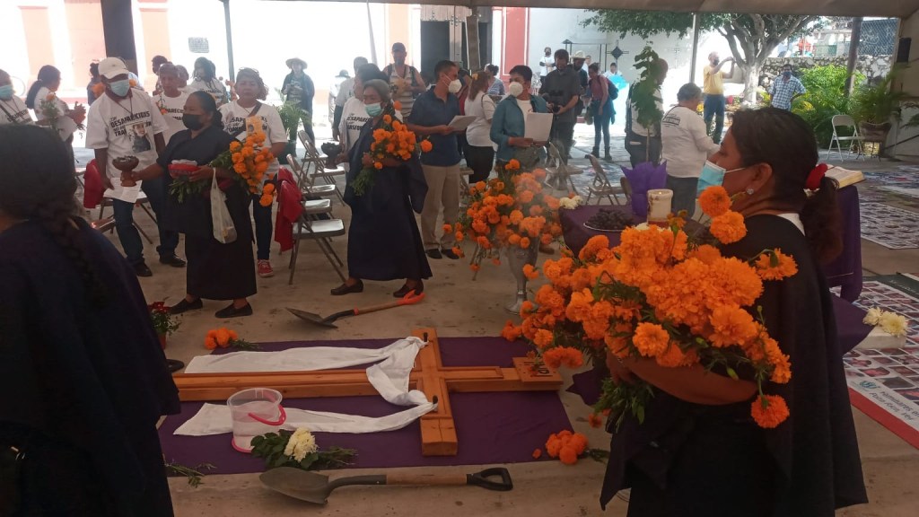 Las buscadoras realizan una procesión y asisten a una misa, es su forma de limpiar esa comunidad donde hace años se evidenció el actuar de la fiscalía estatal, cuando la mamá y la tía de Oliver Wenceslao hallaron las fosas en la que el propio gobierno aventaba a las personas como si fueran objetos desechables.