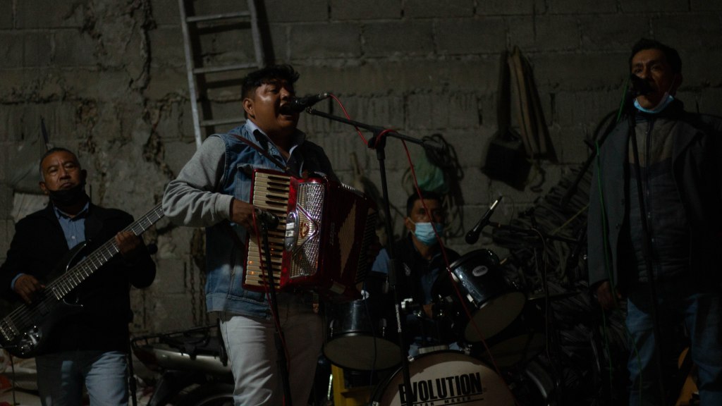 Durante toda la noche sonaron canciones de amor, de fiesta, y no sólo cantó el conjunto que contrataron para amenizar el velorio sino también uno de los tíos del muchacho. Las familias del colectivo bailaron varias canciones con María Luisa, pausando por momentos el llanto y logrando que la despedida se convirtiera verdaderamente en la fiesta que la mamá de Juan de Dios soñó para recibir a su primogénito. Durante unos minutos la fundadora del colectivo tomó entre sus brazos la foto de su hijo y bailó, mientras sus compañeras y compañeros la acompañaban moviendo los pies y las caderas al ritmo del acordeón y la guitarra. Algunas canciones se escuchaban con más fuerza, con las voces de todos cantando a coro: