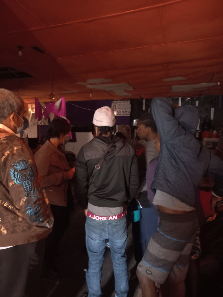 Dentro del mismo “albergue” una madre haitiana que venía de Brasil junto con su hija de año y medio de edad, responde dubitativa a la pregunta de si ha sufrido algún tipo de acoso o abuso. Ella no habla español, comenta que no reciben información por parte del INM, además de que no hay intérpretes, ni manera de comunicarse con las autoridades, que más bien, esperan tener algún compañero o compañera que vayan el grupo que pueda hablar español.