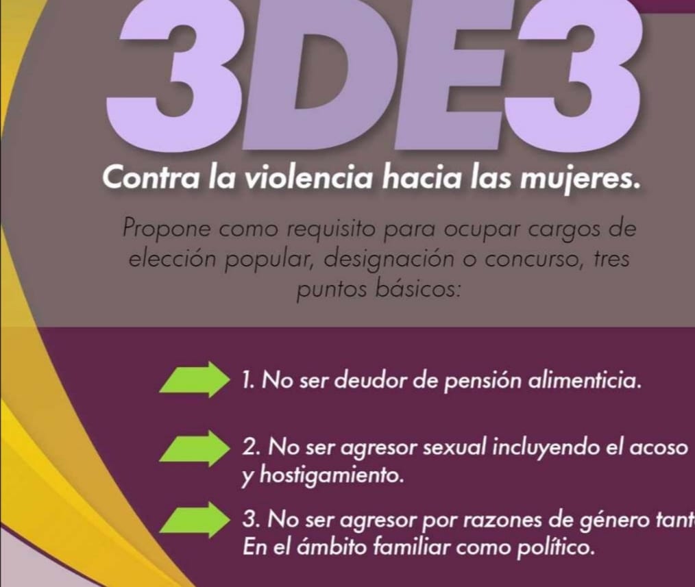 3. No ser agresor por razones de género tanto en el ámbito familiar como político.
